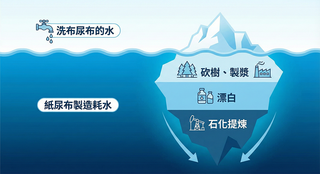 這是一個非常直觀且合理的疑問。畢竟,「洗滌用水」是我們在日常生活中親眼所見的;然而,我們往往忽略了另一面——那些用完即丟的紙尿布,在出現在貨架上之前,究竟已經消耗了地球多少水資源?