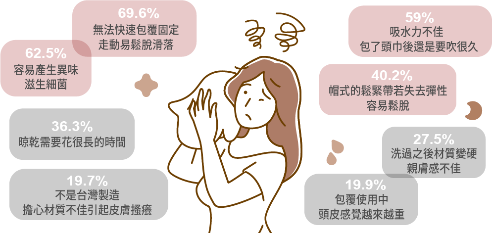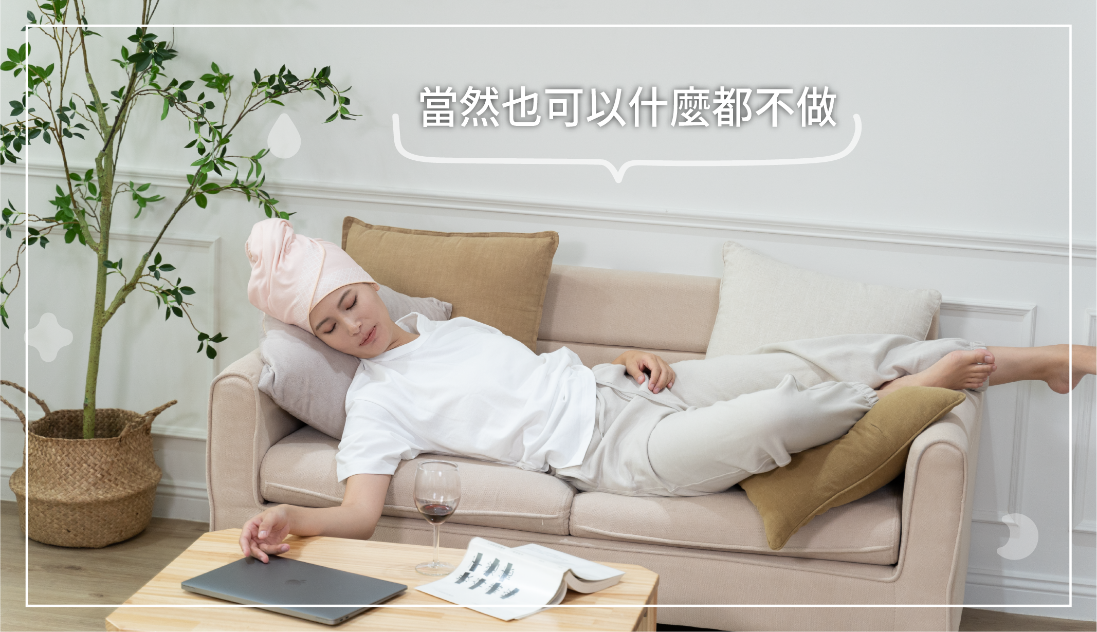 即便包著頭巾躺床、躺沙發,也不會將寢具弄濕。