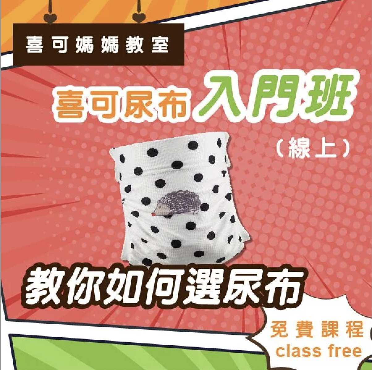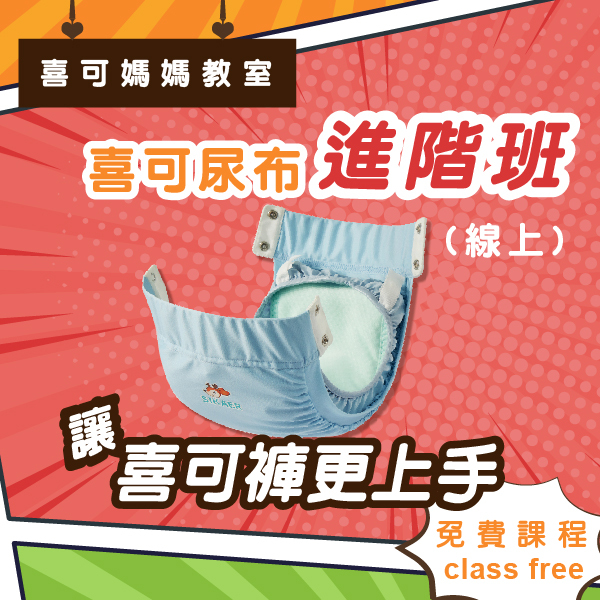 (本課程適合已經在使用喜可褲的爸媽們,如果您才剛認識喜可褲,或是您剛在考慮是否使用布尿布,建議您報名-喜可尿布入門班。)