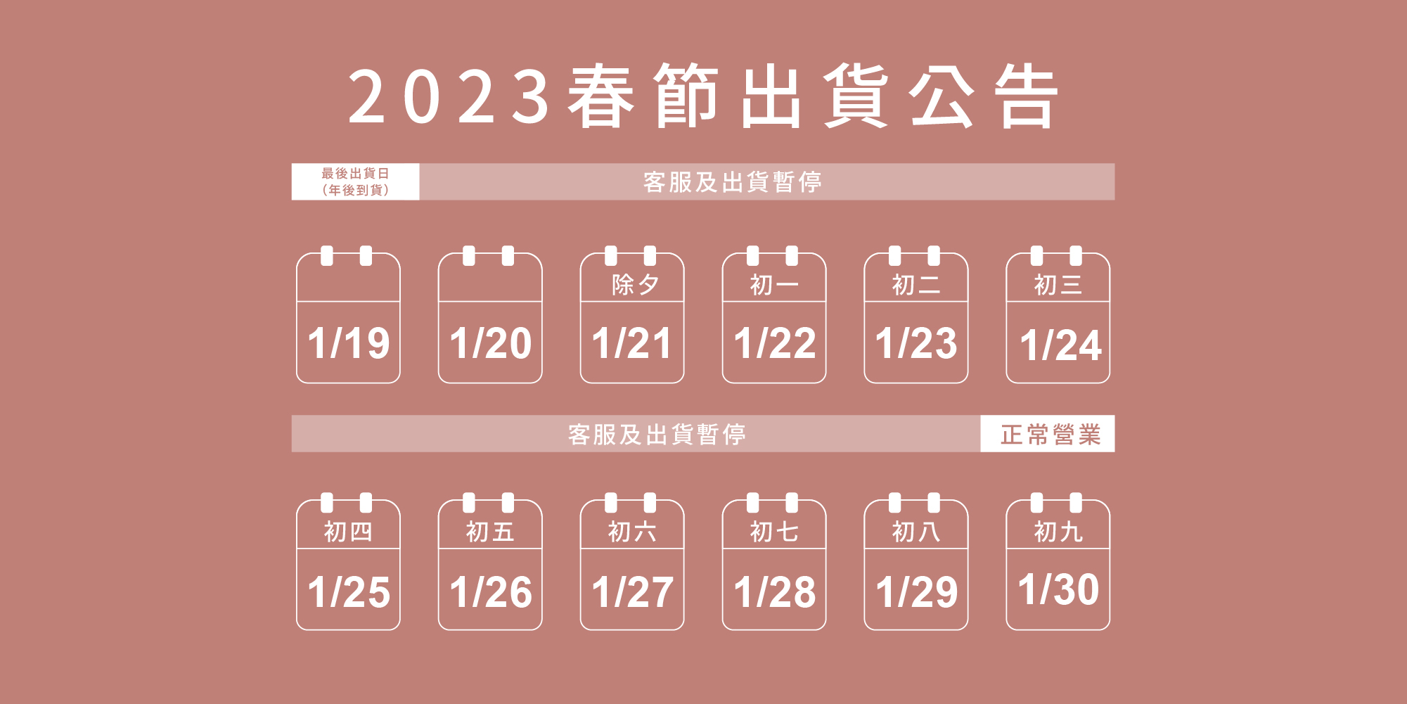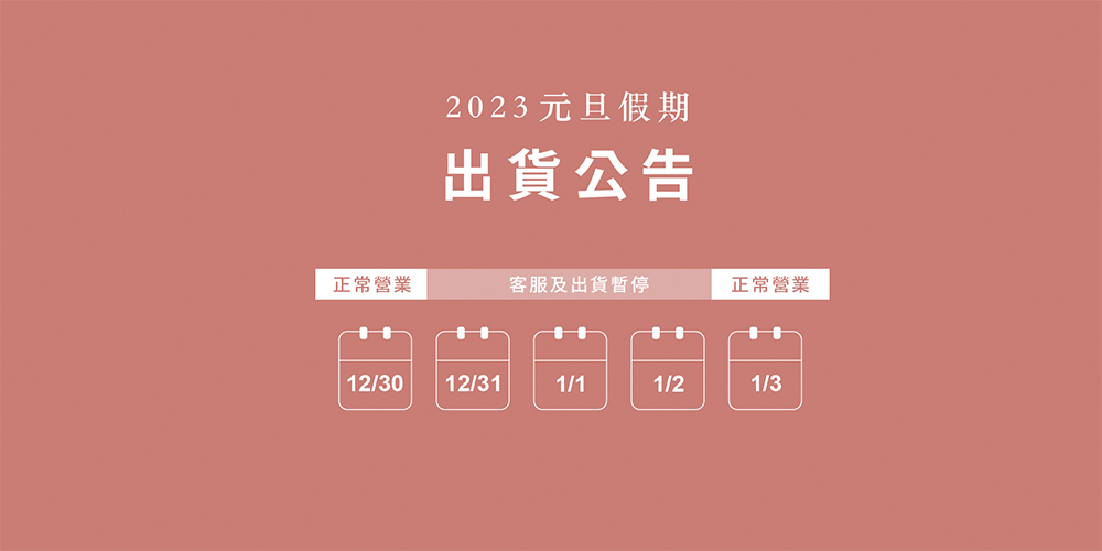 1/2 (一) 一整天將會暫停出貨,1/3 (二)恢復正常出貨,有任何不便敬請見諒。