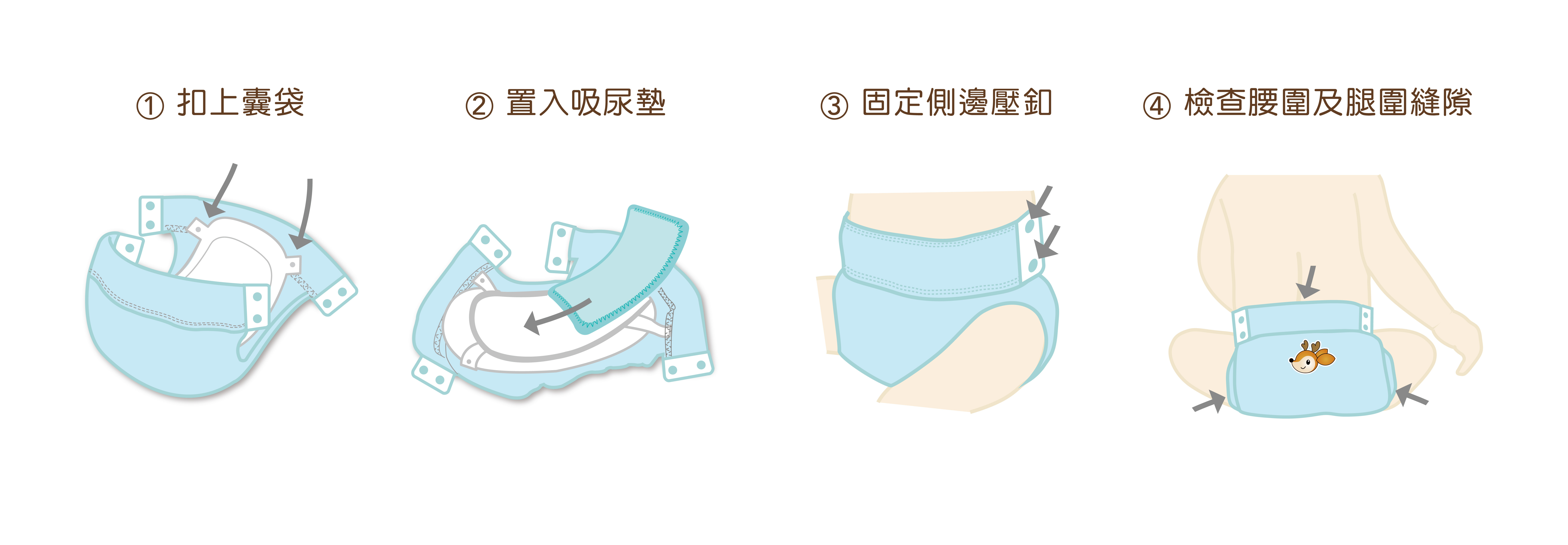 A:都可以隨著寶寶的身形做調整,一件從一開始穿到大寶寶戒尿布都可以使用。