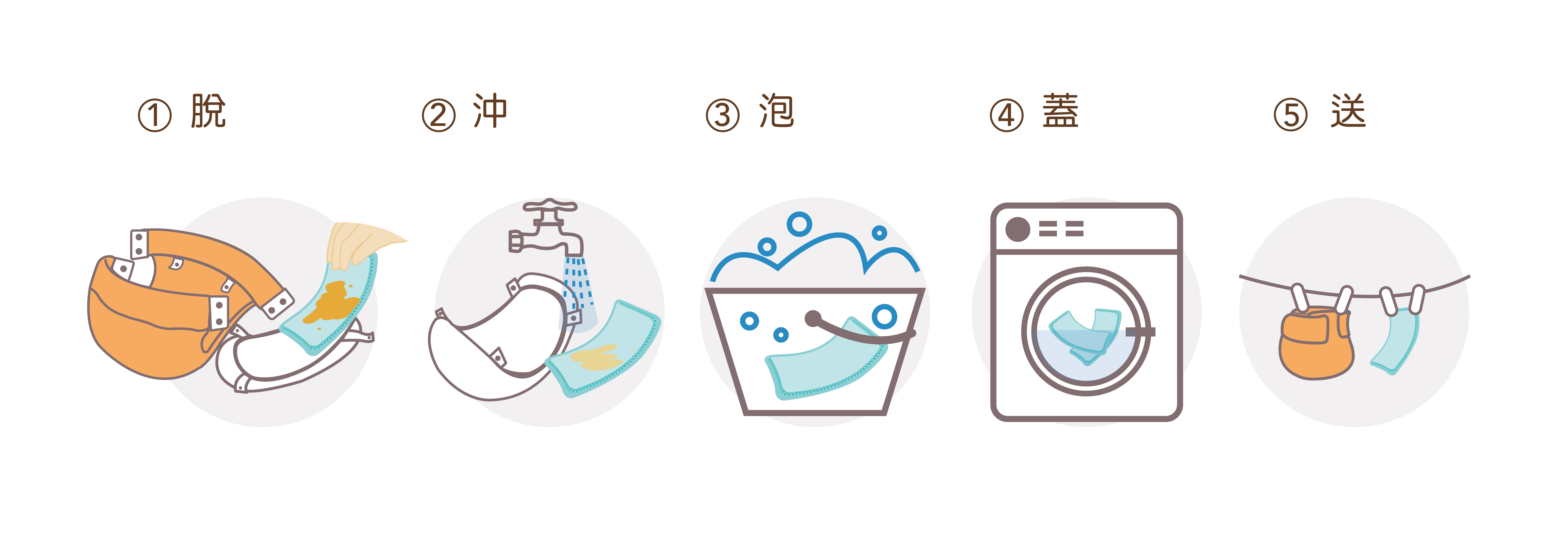 A:布尿布建議洗衣機清洗,因為手洗有可能發生洗劑殘留或是沒洗乾淨,