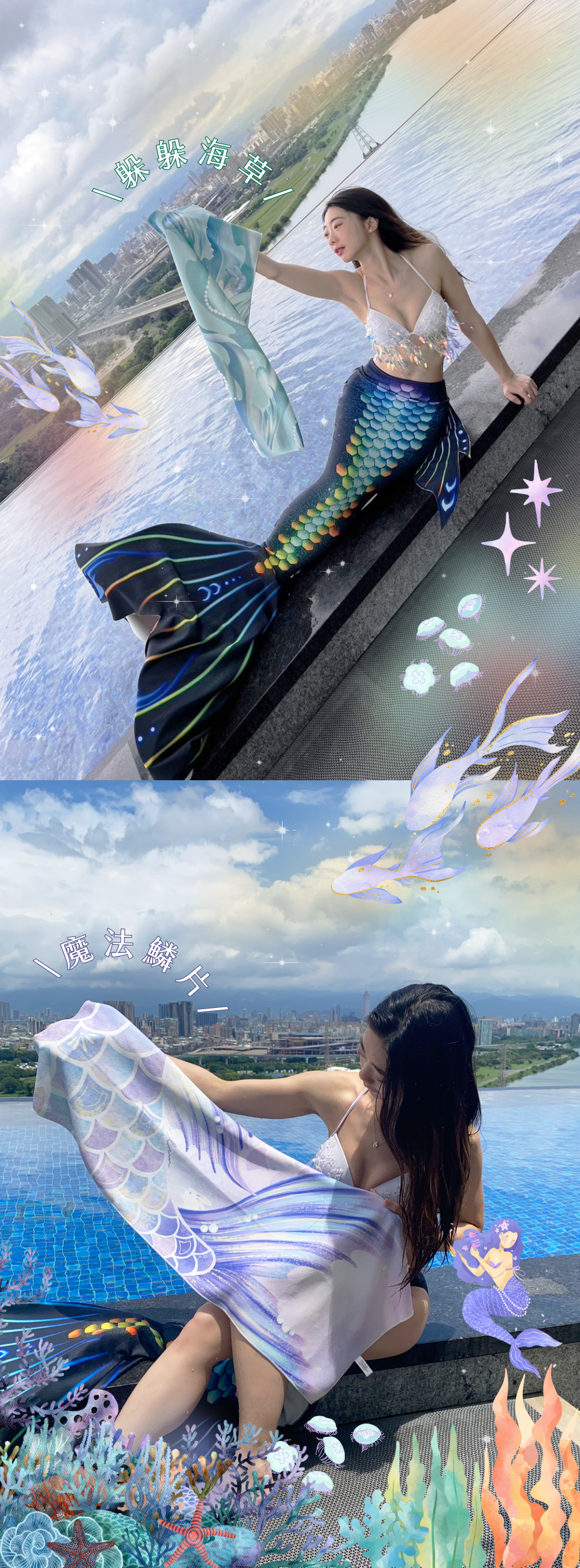 帶著兩款夢幻圖案的擦髮巾一起完成妳的人魚夢💙