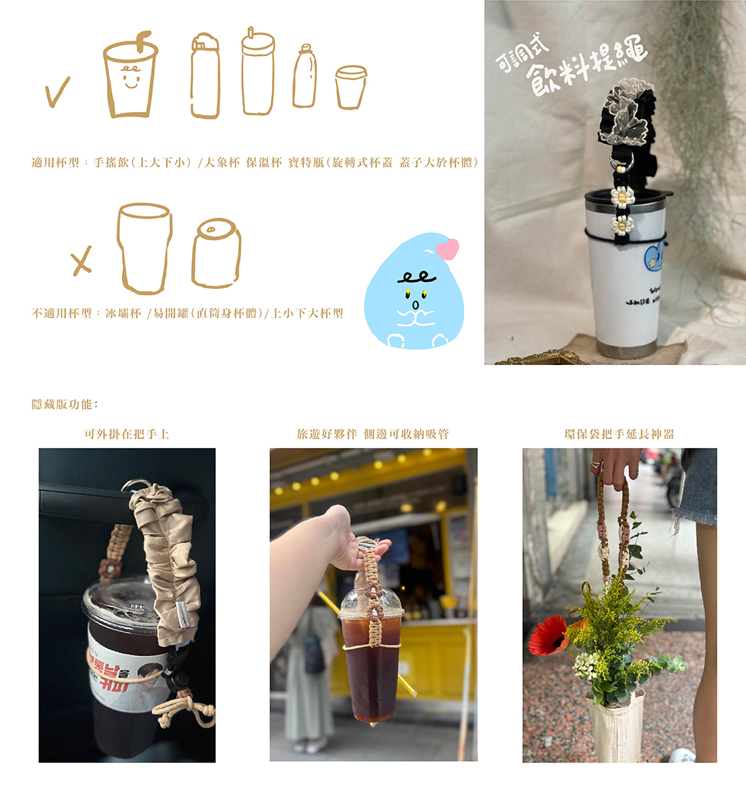 ◼︎ 適用杯型:手搖杯(上大下小)/ 大象杯 / 保溫杯 / 寶特瓶(旋轉式杯蓋,蓋子大於杯體)